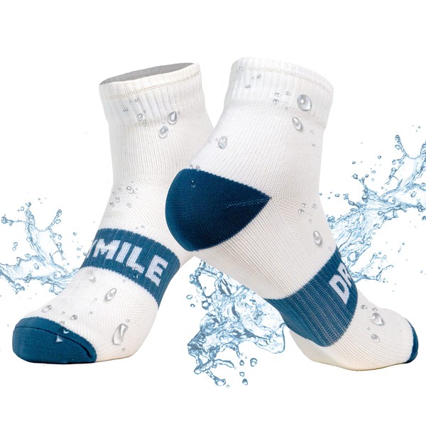 DRYMILE Active Waterproof Socks, Breathable Cushioned Running, Hiking, Winter Waterproof Socks for Men & Women - Ankle, White / Blue, Small