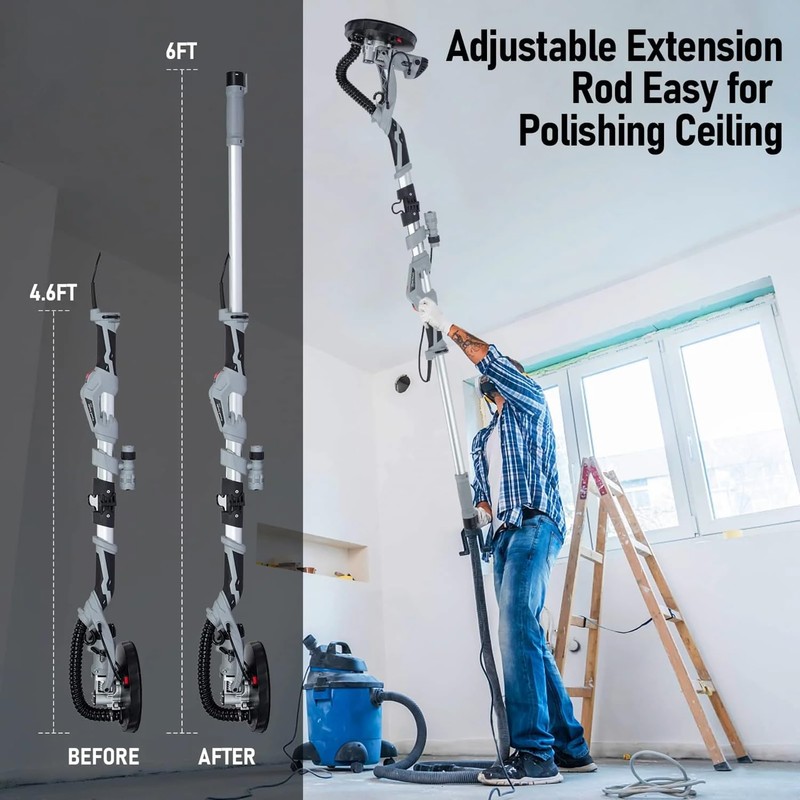 Drywall Sander, 750W Electric Drywall Sander 6.5A, 7 Variable Speed 900-1800 RPM Sander with LED Light, 14 Pcs Sanding discs, with Extendable Handle and Carrying Bag