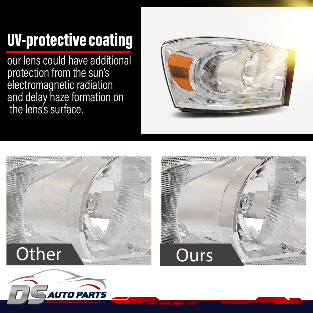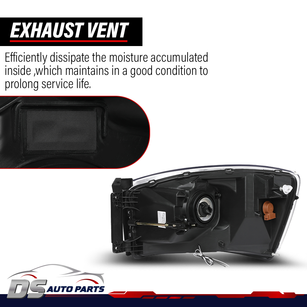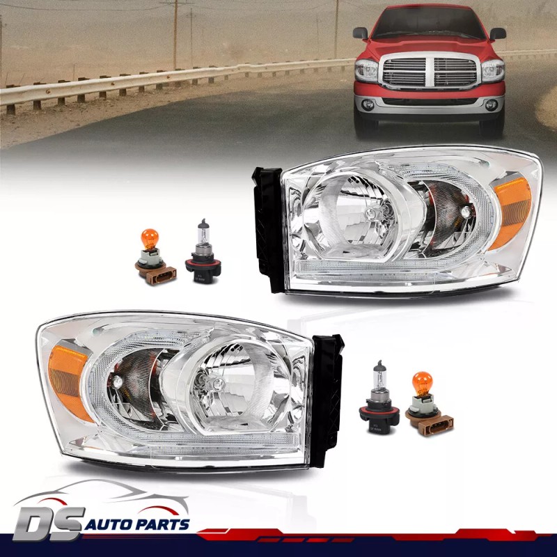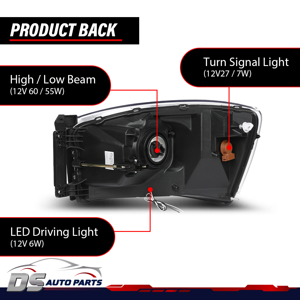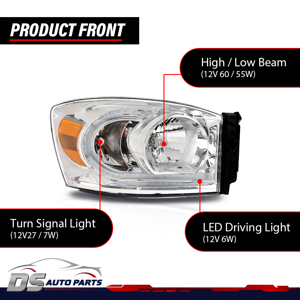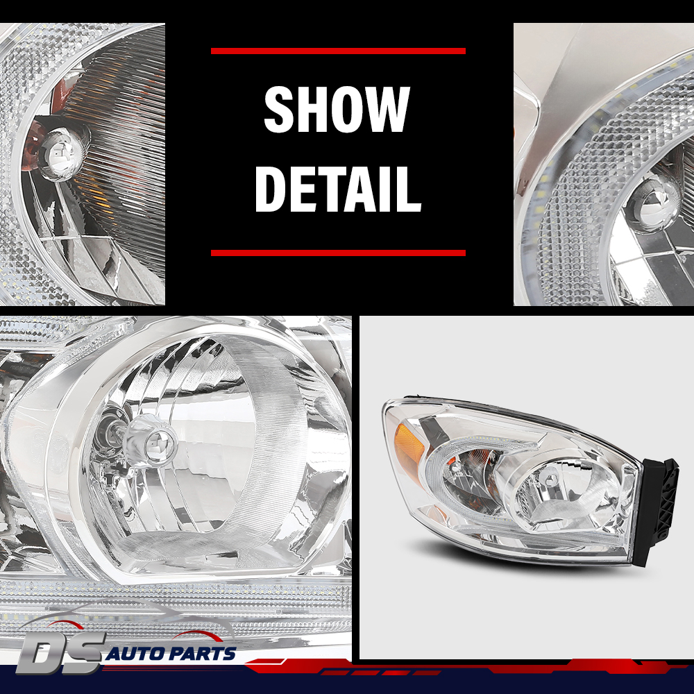ds-auto-parts Clear Lens Headlight LED DRL Clear Signal Fits 06-09 Dodge Ram 1500/2500/3500