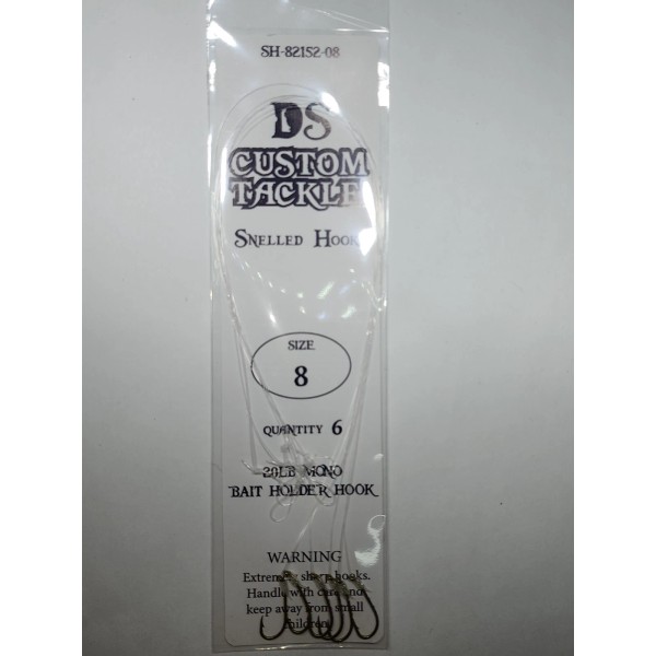DS Custom Tackle Snelled Baitholder Octopus hooks 6 per pack with a 12 inch leader sizes 8 to 4/0 - 8