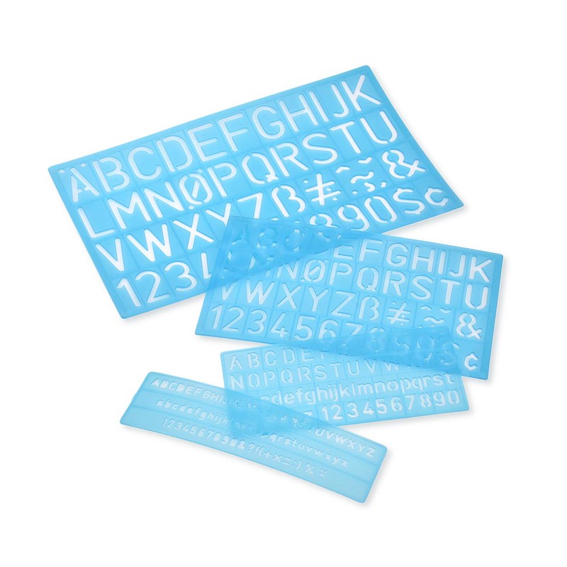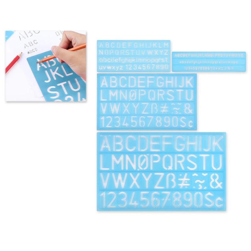 DS. DISTINCTIVE STYLE Alphabet Stencils Set of 4 Plastic Letter Stencil Assorted Sizes Number Ruler for Learning, Painting, Scrapbooking - Blue