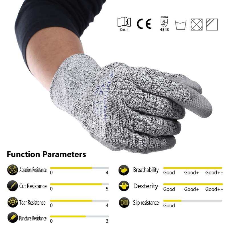 DS Safety PU Coating Cut Protection Gloves Hand Protection for Cutting Work G...