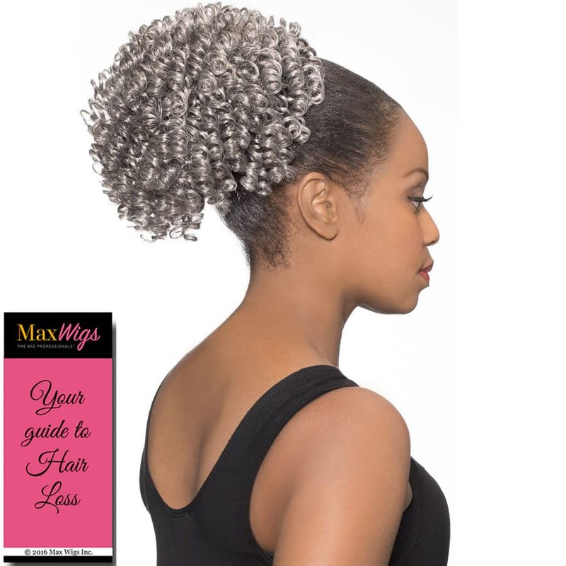 - DS014 Color 4 Med Dark Brown - Foxy Silver Wigs Curly Medium Length Hairpiece Synthetic Drawstring Ponytail African American Womens Spiral Grey