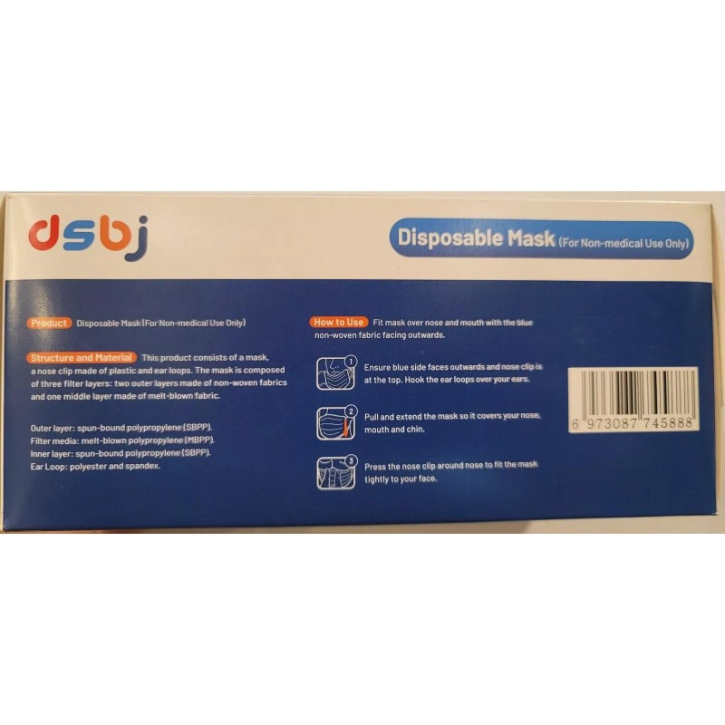 DSBJ 3 Ply Procedural Disposable Face Mask 10x10 Packs (Non-Medical Use) 100 PCS