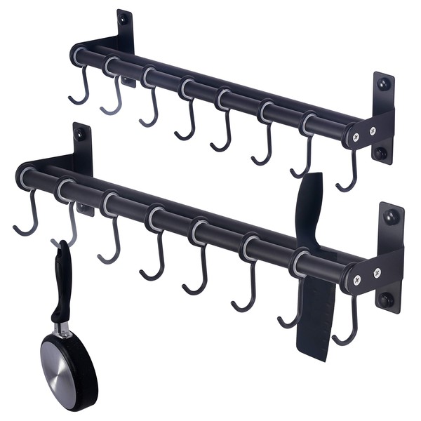 Dseap Pot Rack - Pots and Pans Hanging Rack Rail with 8 Hooks, Double Bars, Pot Hangers for Kitchen, Wall Mounted, Black, Pack of 2