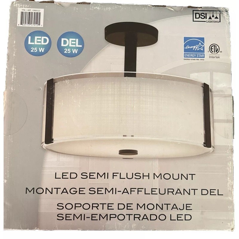 DSI Lighting Bronze LED Semi-flush Mount ~NIB 13.8” Wide X 9.8” Tall