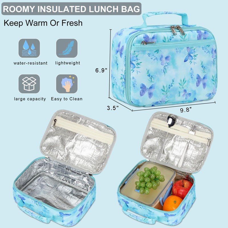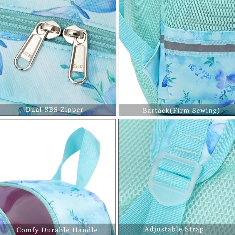 DSIUE Kids Backpack for Girls Elementary BookBags Teens Middle School Backpack with Lunch Box (Butterfly Green)