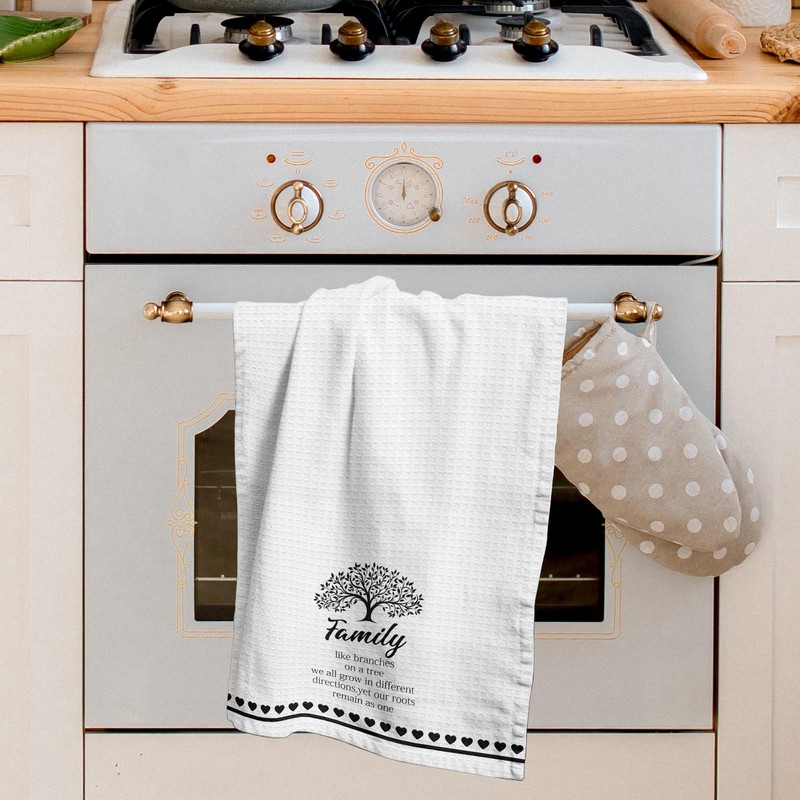 dsjaidh 16" x 24" Positive Quote Kitchen Towel - Family Like Branches On A Tree - Modern Kitchen Hand Dish Tea Waffle Weave Towel - New Home Decor & Housewarming Gift Supplies - A11