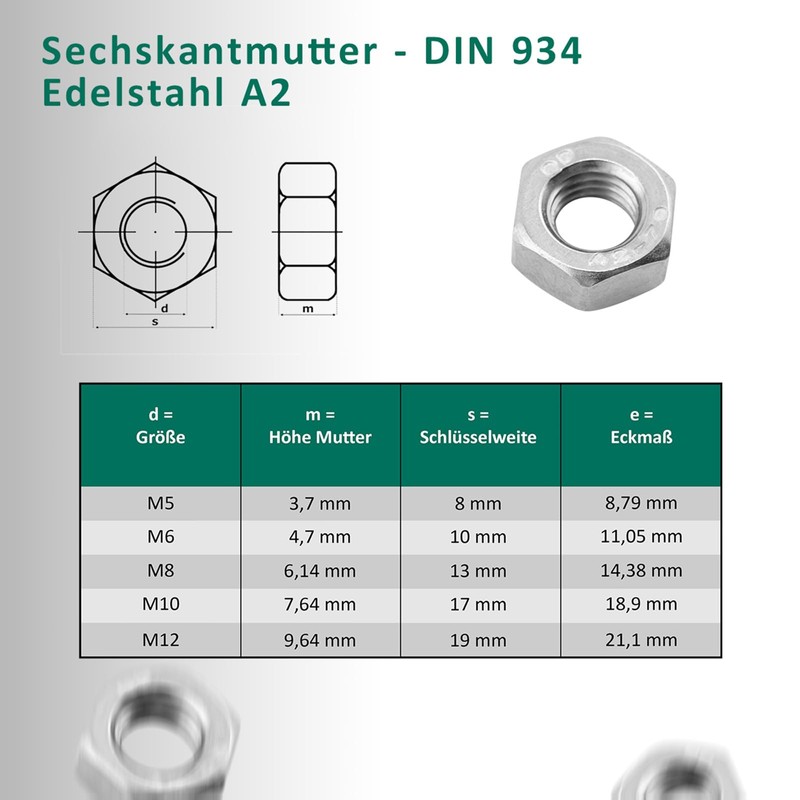 ✔ Hexagonal nut (DIN 934): standard nut for secure screw connection with optimal power transmission.