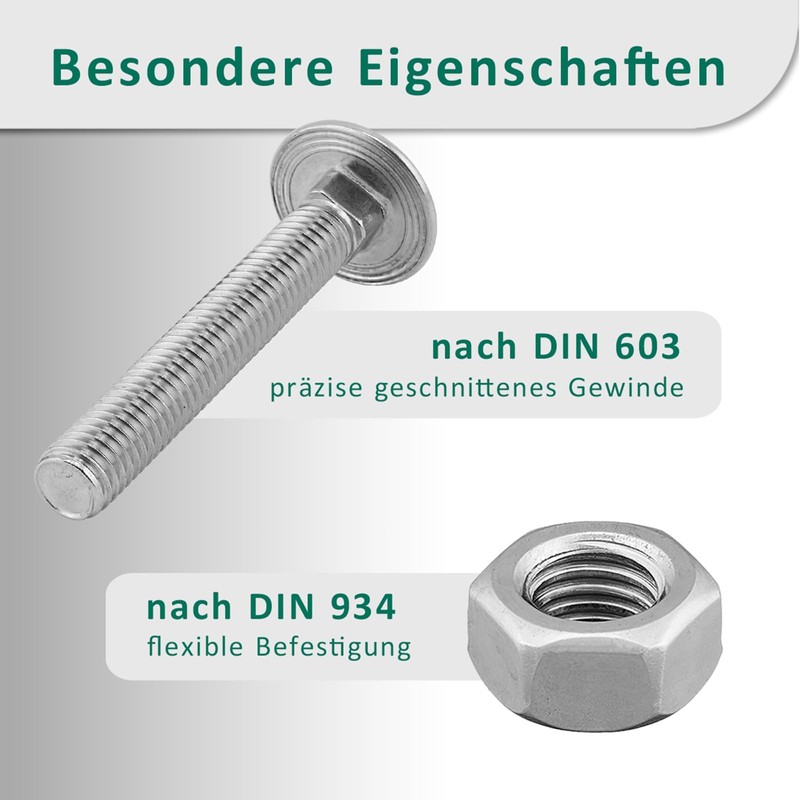 - [COMPLETE SET FOR EASY INSTALLATION]: The combination of carriage bolt and matching hex nut ensures a secure and durable connection - ready to use immediately for your construction project.