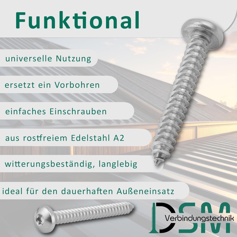 - Versatile use: ideal as self-tapping screws for sheet metal, wood, plastic or metal profiles. Perfect for plumbing work, interior construction, solar and metal construction, machine or fixture construction as well as workshop, household, industry or hobby projects with high requirements.