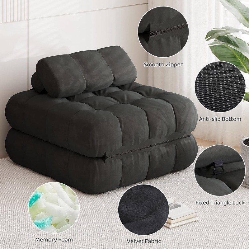 - Thoughtful Details to Improve Practicality: The sofa bed has a triangular buckle design that can fix the round pillow to prevent it from slipping during use. The bottom is an anti-slip layer, which can maintain strong friction even on smooth floors