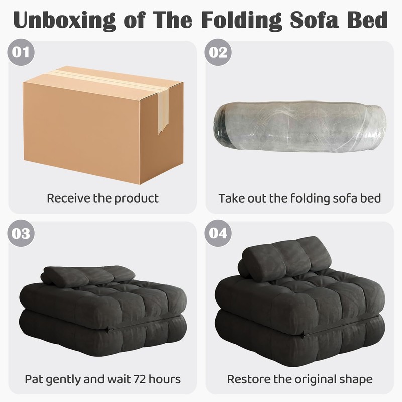 - Expansion and Optimal Comfort: After unpacking, please wait 72 hours to allow the folding sofa to fully expand and return to its natural state, which will ensure that it reaches the ideal softness and comfort