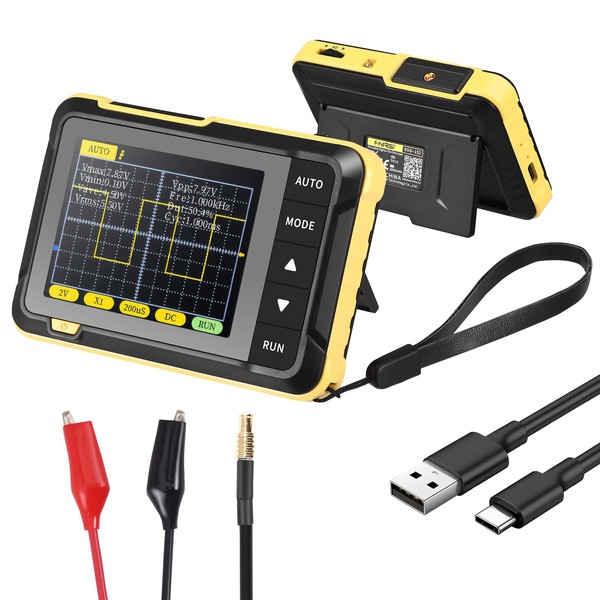 - 【Detail Design】: With high sensitivity button, easy to operate, long press AUTO key to quickly calibrate baseline, quickly measure waveform, improve work efficiency. Convenient Type-C ports for firmware updates and charging, and a foldable stand for hands-free use provide a simple and intuitive operating experience.