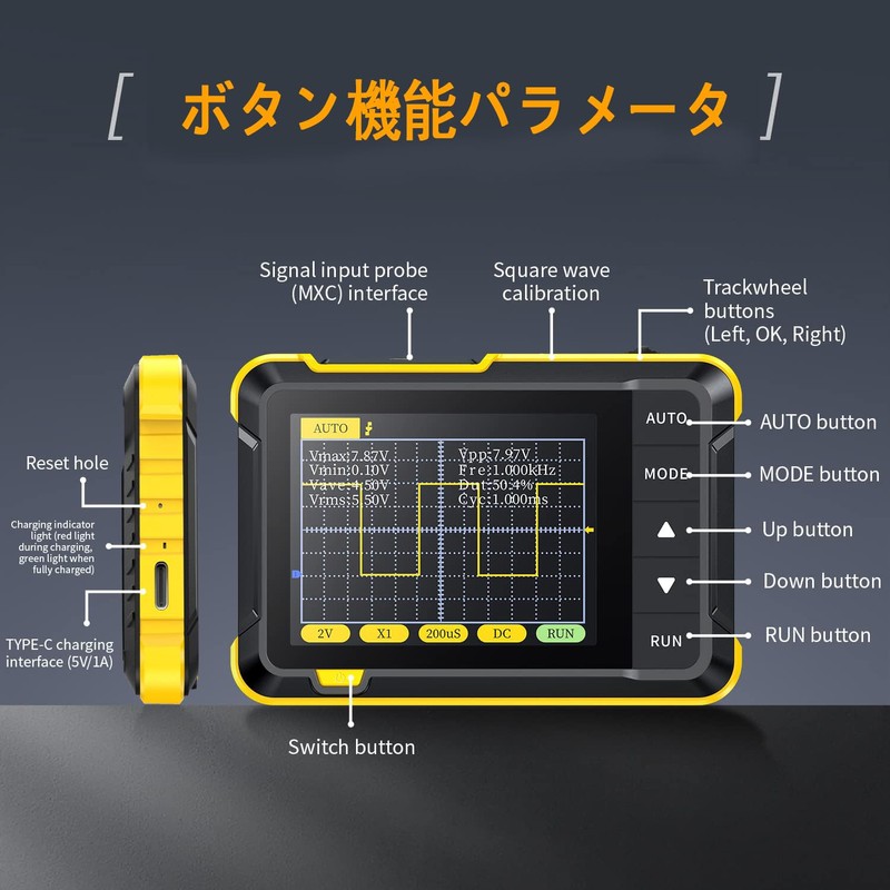 - Professional Specifications: Equipped with full trigger functions (AUTO/Normal/Single). Perfect compatibility from cyclic analog signals to non-cyclic digital signals. 2.8 inch high definition LCD display screen, resolution 320*240, Type-C interface supports data transmission and charging