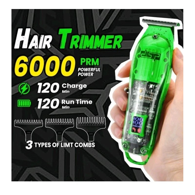 Professional Hair Clippers: Our DSP clipper set offers you a cordless haircut experience, offering 240 minutes of use with just a 3-hour charge. Whether you're a professional barber or a man looking to cut his hair at home, this tailor-made clipper set redefines your haircut, as it comes with 8 guide combs to give you versatile cutting options. Precision Trimmer and Clipper Combo: We bring you an all-in-one DSP Detail Trimmer and Fader Clipper combo kit, creating the perfect fade effects or ornate carving your hair requires. Our cordless hair trimmer promises 120 minutes of uninterrupted use after a couple of hours of charging.