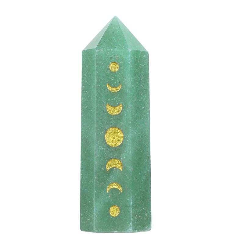 dssmboom Healing Stone Single Point Stick for Meditation Chakra Balancing, Engraved Moon Phase Facet Crystal Tower for Home Decoration, Green Aventurine