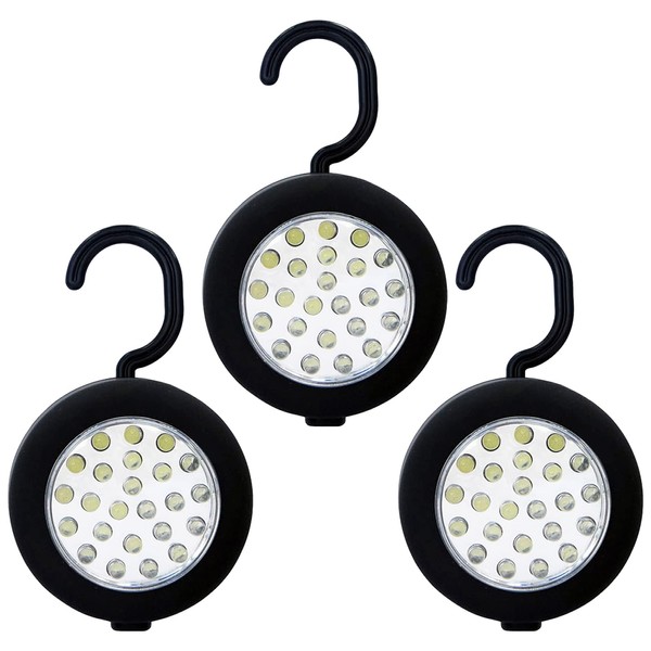 DSYJ 24 LED Round Magnetic Work Light Torch With Integral Hook And Magnet Set, Pack of 3