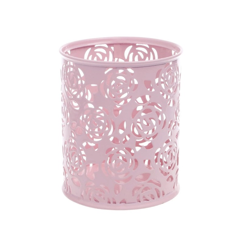 DSYJ Hollow Rose Flower Pattern Cylinder Pen Pencil Pot Holder Container Organizer Pink