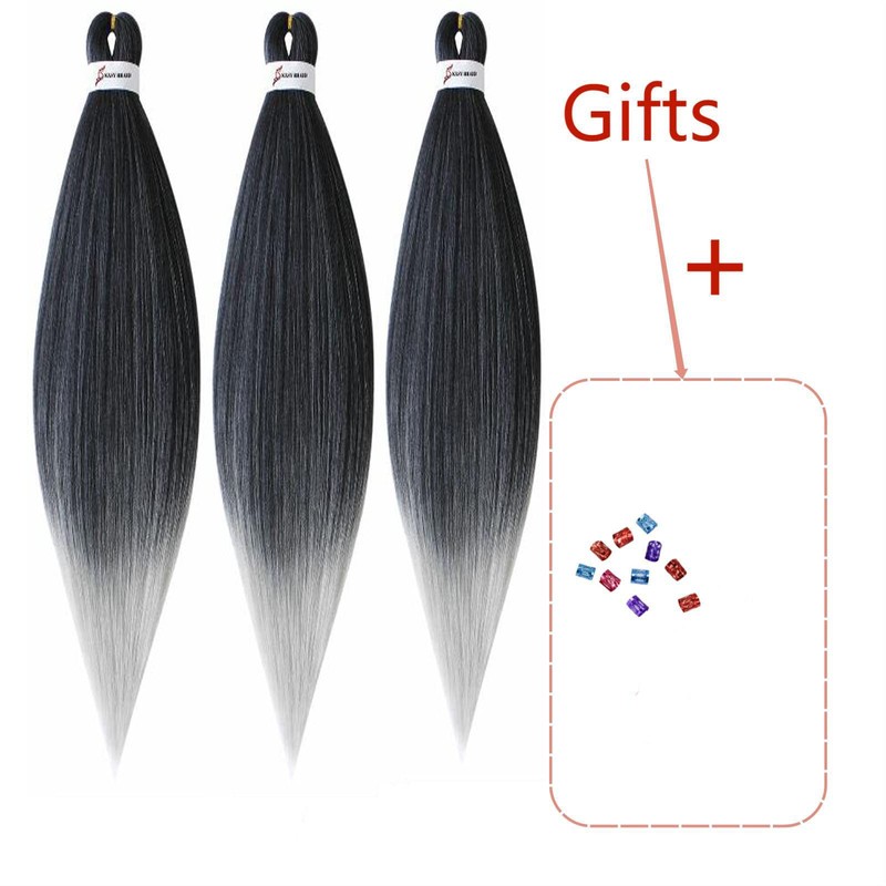 DT CHERYL Pre Stretched Braiding Hair, 6 Pack Silver Braided Hair extension 26 inches Synthetic EZ Braid Hot Water Styling Braid Yaki Texture Pre-stretched Hair for Braiding Braids T1B/Silver