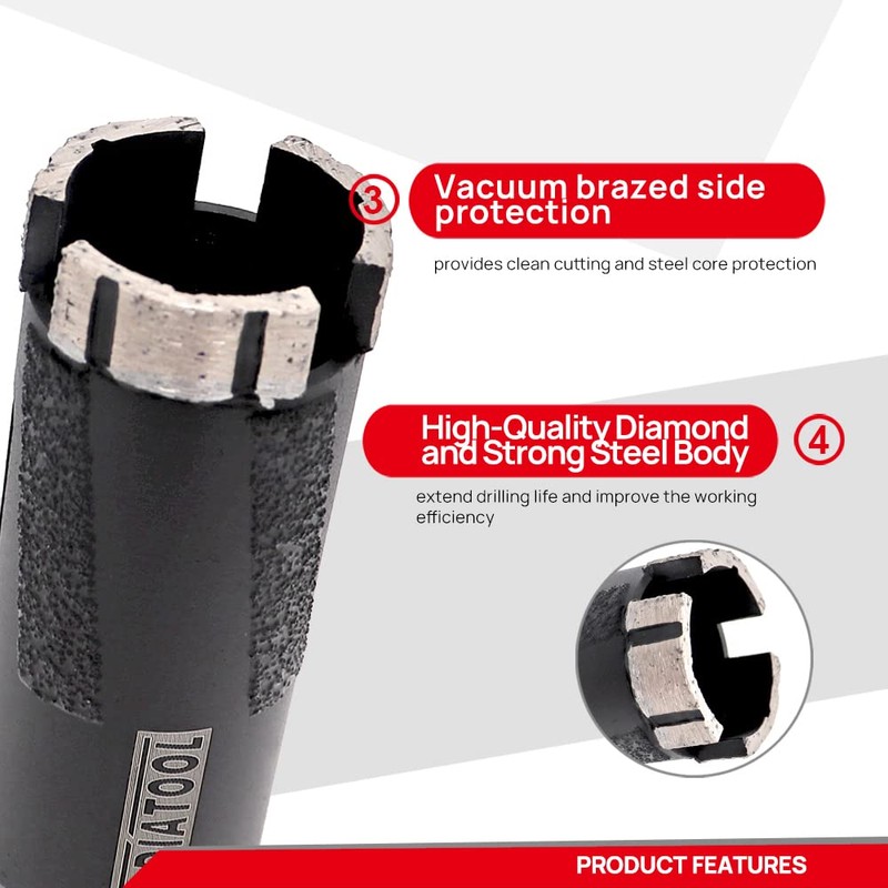 - Application: Dry or wet use for granite marble. Wet use for other nature stone/concrete. Not recommend for rebar concrete and solid concrete. Ideal for drilling the faucet mounting holes in granite/quartz/marble countertop.
