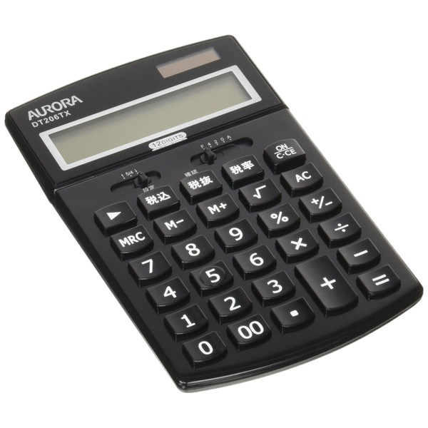 オーロラジャパン 中型卓上電卓 税計算機能付き ブラック DT206TXB