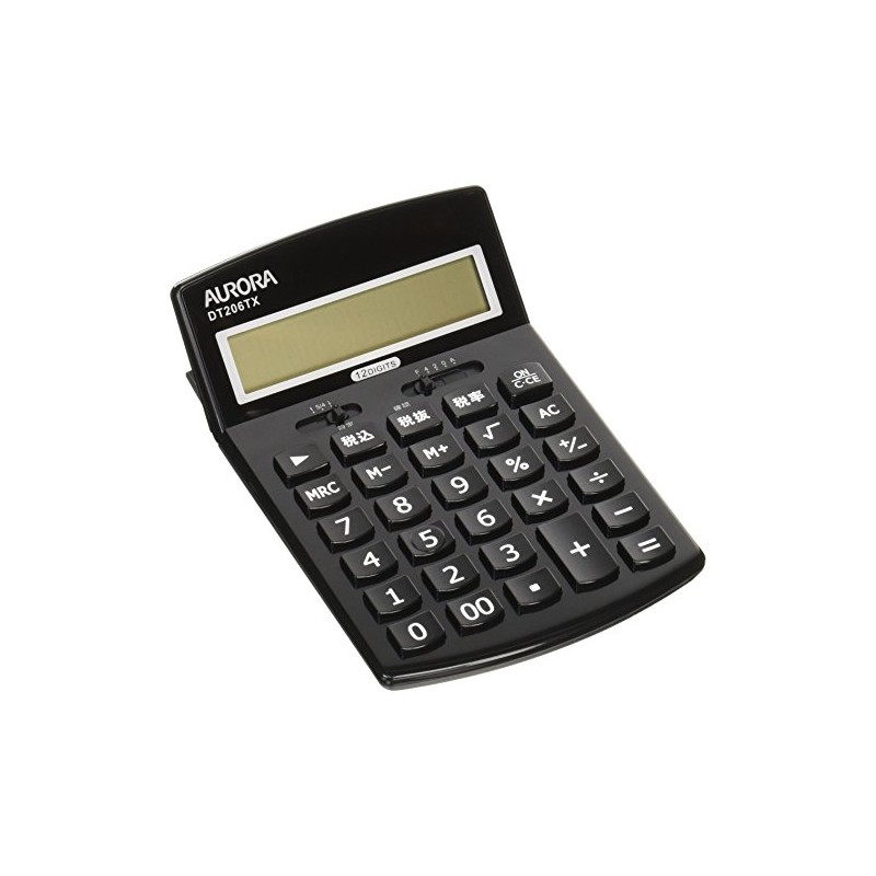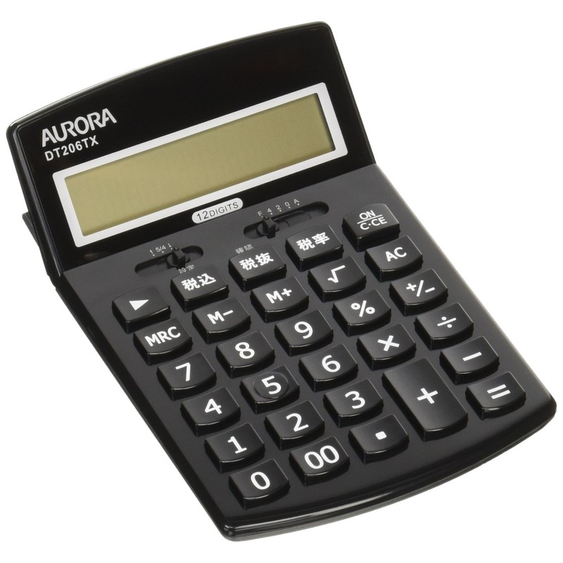 オーロラジャパン 中型卓上電卓 税計算機能付き ブラック DT206TXB