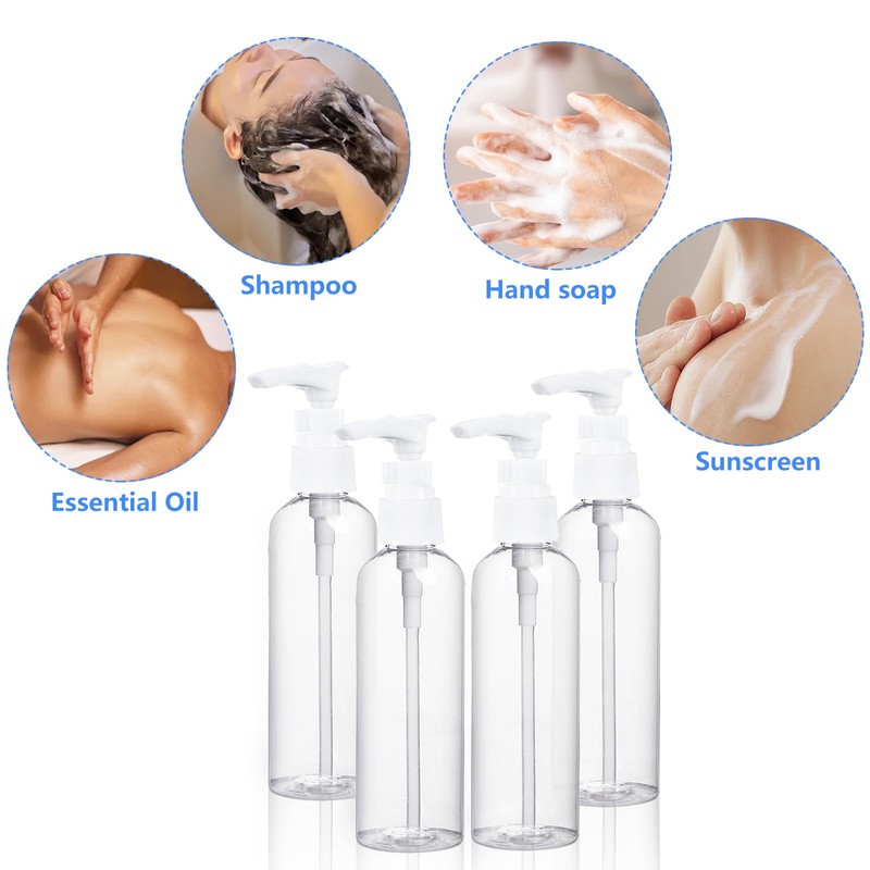 - 【Safe Material】The small lotion pump bottle is made of eco-friendly PET material that is high-quality, BPA-free, non-toxic, and resistant to cracking, wear, and impacts. It's safe to use and refillable, ensuring long-term use. Each pack includes 4 bottles with a capacity of 3.4oz (100ml) per bottle.
