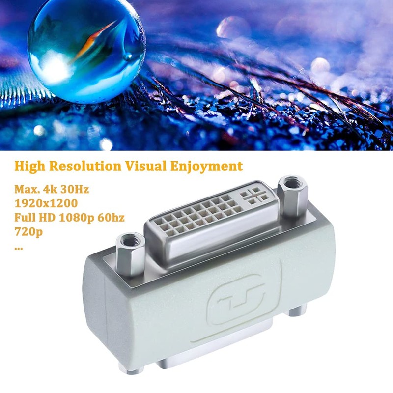 - 4K DVI port adapter supports video resolutions up to 4k 30Hz, 1920x1200 and Full HD 1080p 60hz, 720p; audio must be transmitted separately ( DVI does not natively support audio)
