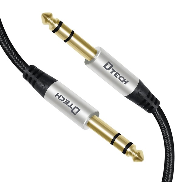 DTech Electric Guitar Cable TRS 1/4 Instrument Cable Aux Right Angle Balanced Stereo Jack Quarter Inch 6.35mm (1.5M)