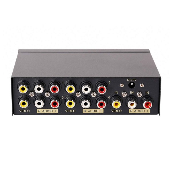 - 4 way RCA composite video splitter (1 in 4 out) splits one audio video analog signal into multi TV monitors /speakers for multiple viewing monitors or dubbing projects