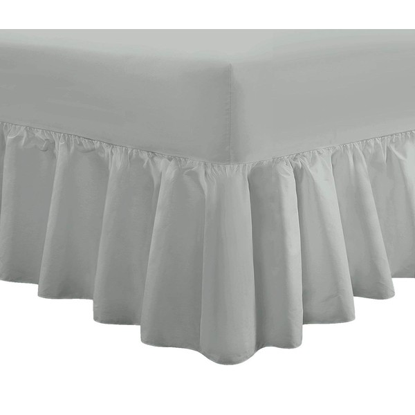 DTEX HOMES Luxury Polycotton Extra Deep Frilled Valance Fitted Sheets, Single - Silver