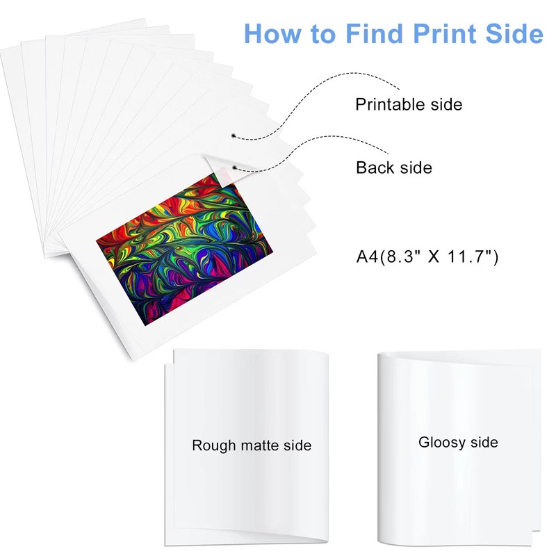 - 【GREAT COLOURS AND CLEAR PATTERN】:Premium DTF transfer film, high quality double matt side, rough matt side as printing surface, for clear printing and rich colors, the pattern could be clear even if washed or Kneaded after. and smooth feel durable.