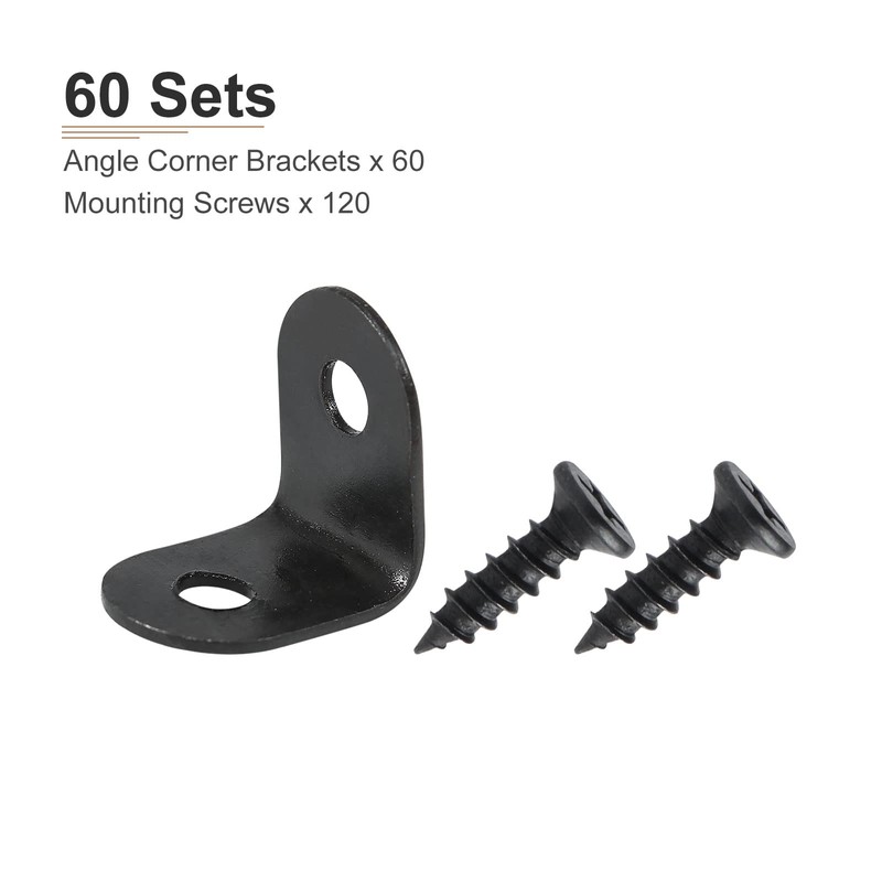 DTGN 0.47"x0.47"x0.35"(LxWxH) L Bracket Corner Braces -60Pack- Good for Mending Wooden Furniture - Metal Right Angle Brackets W/Screws - Black