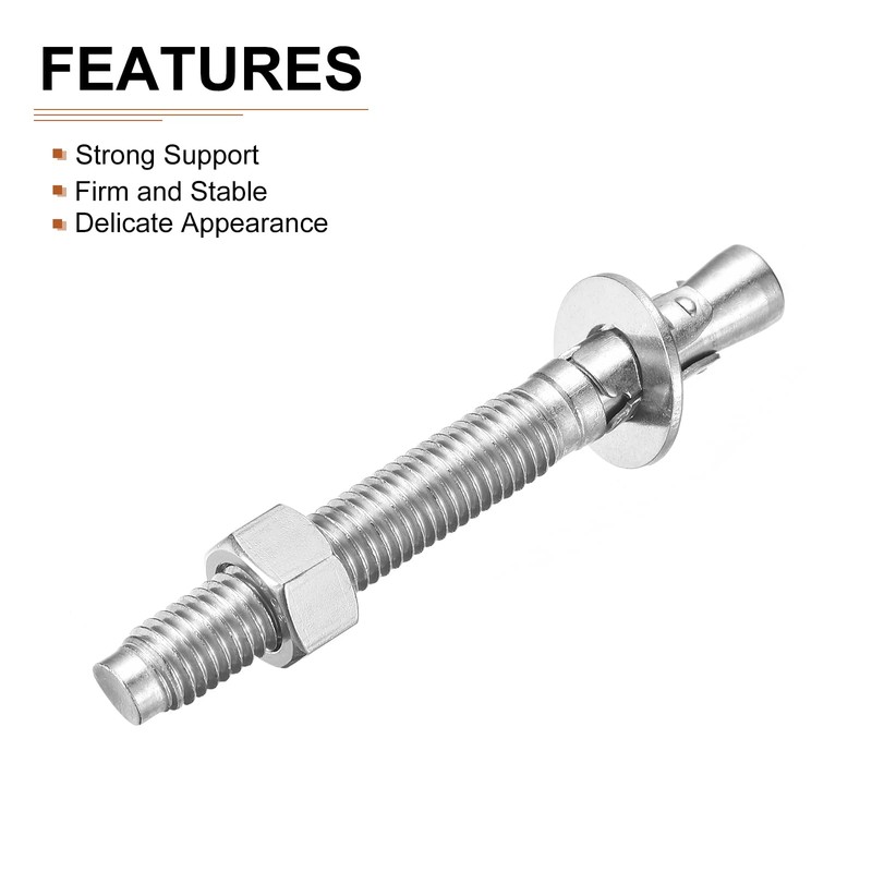 Feature - Our concrete wedge anchors features wedge-shaped and cylindrical designs, with a delicate appearance. The cylindrical design makes the expansion tube more stable, easy to install, and versatile. Our wedge screw expansion tubes are professionally designed for indoor and outdoor use.