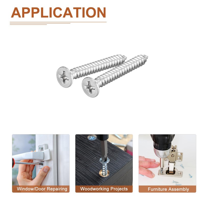 - [Self Tapping Srews]: The package comes with 100pcs of silver tone self tapping screws in #8x1-1/4" size(Thread Dia*Total Length). The quantity is sufficient and the size is enough to meet your needs on different occasions.