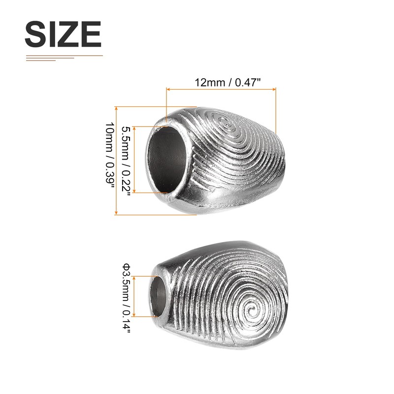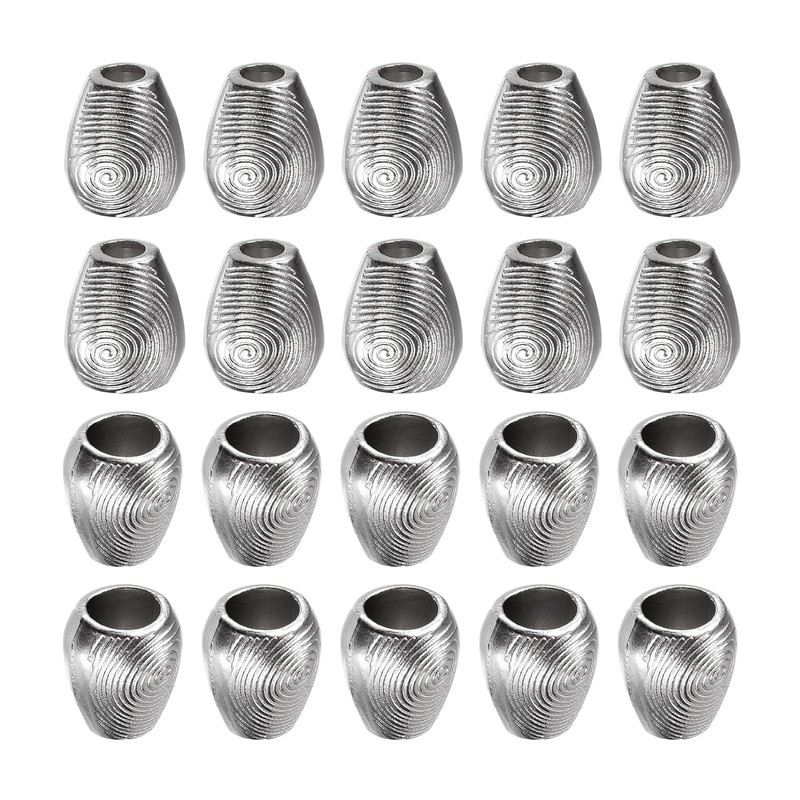 - Metal Bell Stopper - The package comes with 20pcs of silver alloy conical cord ends lock in small hole diameter: 3.5mm / 0.14inch, big hole diameter: 5.5mm / 0.22inch, total size: 10 x 12mm / 0.39 x 0.47inch(L*H).