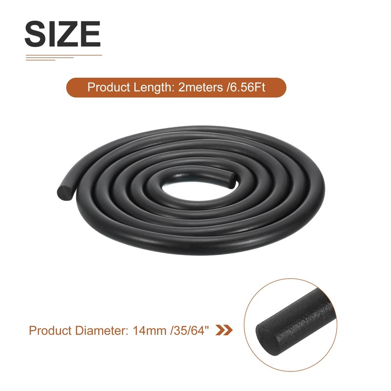 • [Rubber Seal Strip]: The package comes with 1pcs of black rubber seal strip in 14mmeters(35/64") Product Diameter, 2meters(6.56Ft) Product Length.