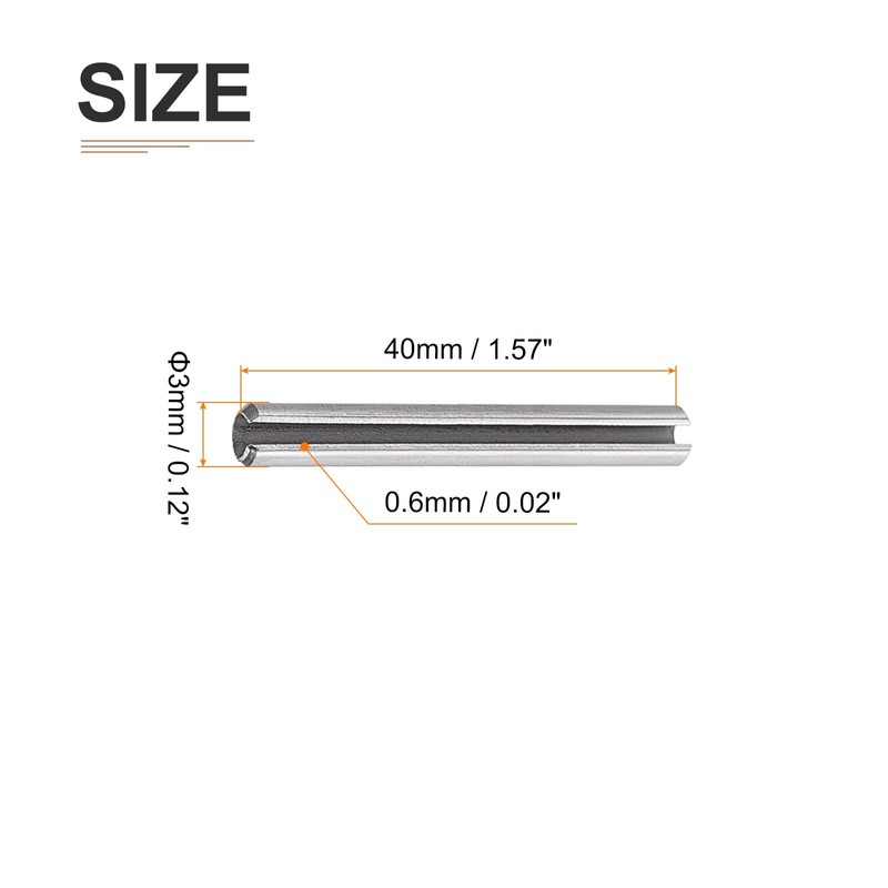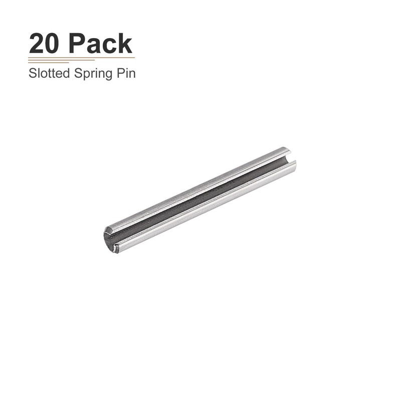 - [ROLLPIN SPRING SLOT]: Package contains 20 pcs silver slotted spring pins 3mm/0.12" in diameter, 40mm/1.57" in length, 0.6mm/0.02" in thickness