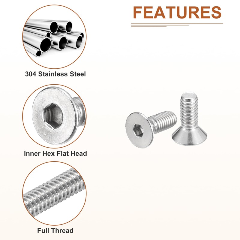 - [Feature]: The flat head machine screws are very strong and are great for both indoor and outdoor use. This stainless is superior to regular steel and provides excellent rust resistance.