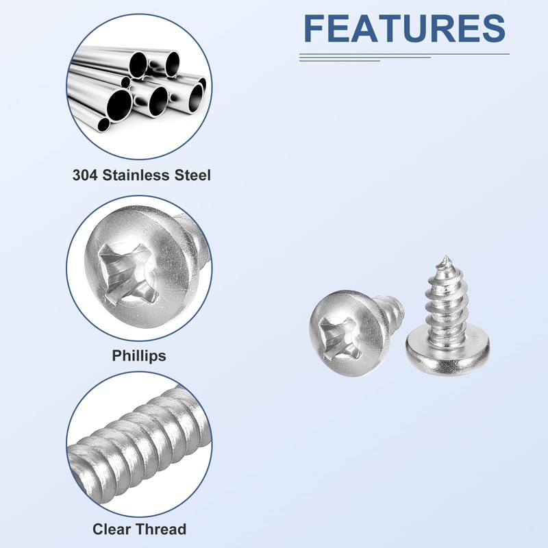 - 【SELF-TAPPING SCREWS】The package comes with 500 304 Stainless Steel,Washed Silver Pan Head Cross Self-Tapping Screws.Size:M2x4,M2x6,M2x10,M2x12,M2x16,M3x6,M3x8,M3x12,M3x16,M3x20,M4x8,M4x12,M4x16,M4x20,M4x25.A total of 15 products, 500 self-tapping screws.The quantity is sufficient,meet your daily needs.
