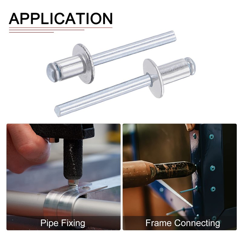 - [Good Choice]: Blind rivets are great used in applications where there is no access to the rear(blind side) of the joint. Commonly used in machinery, furniture, RV, ship, construction and other scenes to make high-strength joining in a range of materials. Typically, the process is used for joining plastic or sheet metal.