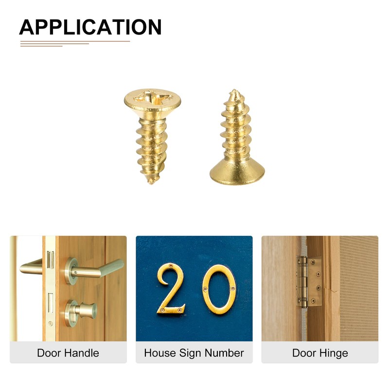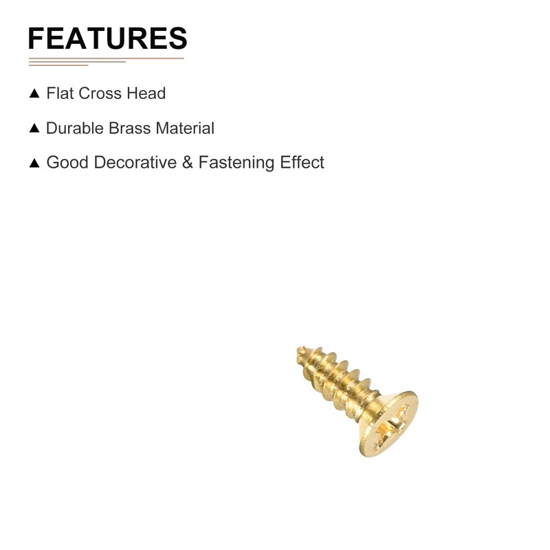 Feature - Wood screws have cross head, round flat head, and bright brass appearance, which not only has good decorative effect, but also has fastening effect.