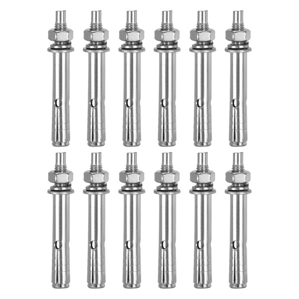 DTGN M6 x 60 Expansion Bolts - 12Pack- Good for Concrete Dry Brick Block Walls - 304 Stainless Steel - Silver