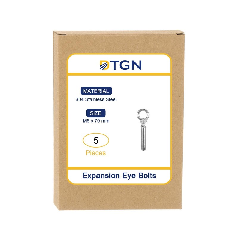 DTGN M6 x 70 Expansion Eye Bolts - 5Pack - Good for Concrete Dry Brick Block Walls - 304 Stainless Steel Eye Bolts Fastener - Silver