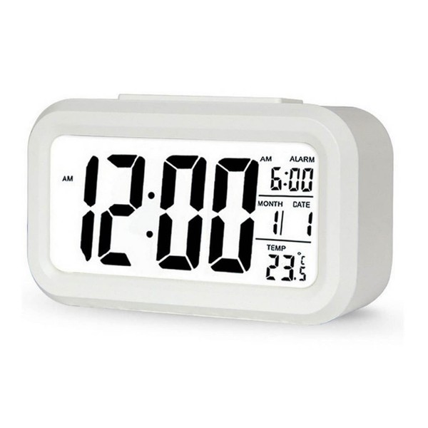 DTL Digital Alarm Clock LED Display with Temperature Big LCD Digit Display Larger LCD Backlit Display Snooze Smart Brightness Sensor for Bedroom Home Office and Travel (White)