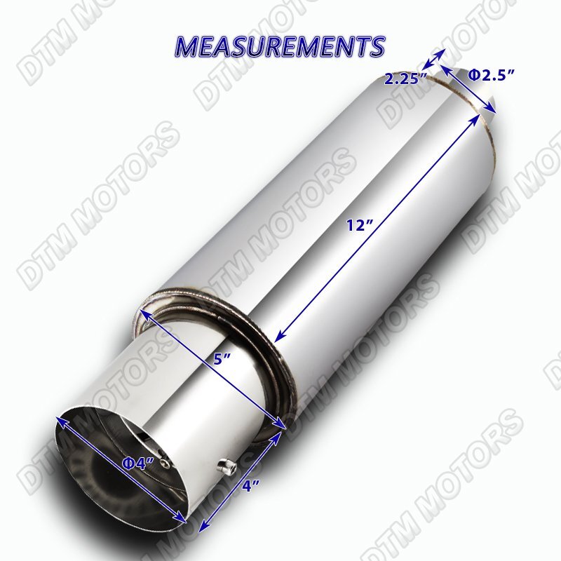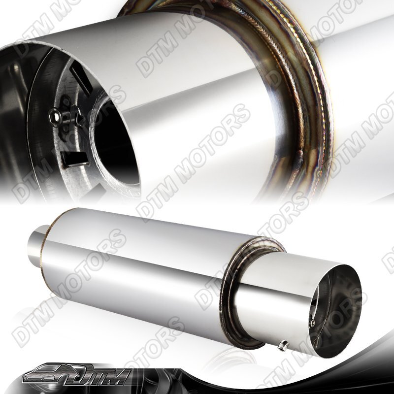 DTM Universal 4" N1 Style Flat Tip Stainless Steel Muffler With 2.5" Inlet +Silencer