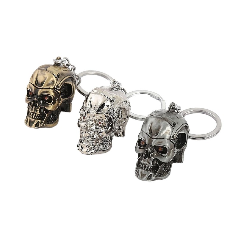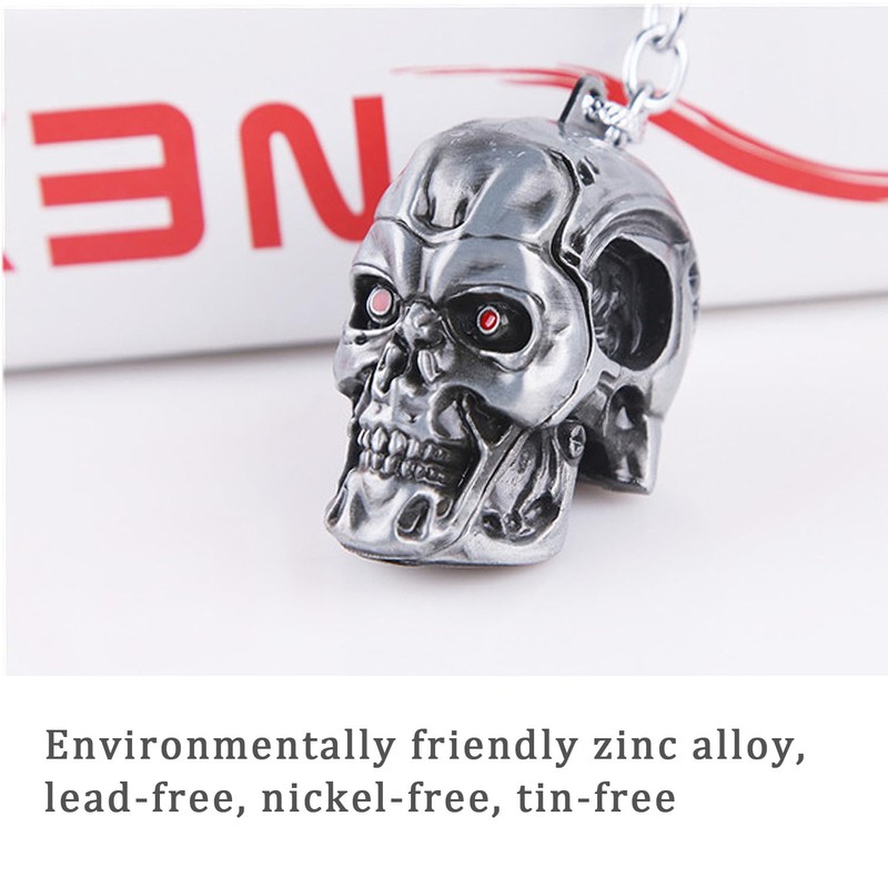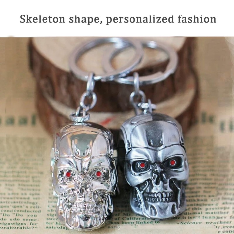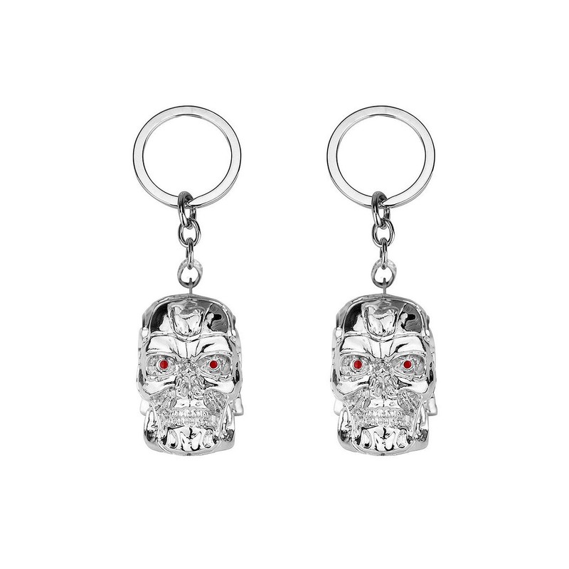 DTSFHTDAL 2PCS Keychain, The Terminator Skull Metal Keychain Skeleton Key Chain Car Keychains Terminator Keychains Unisex (silver white)