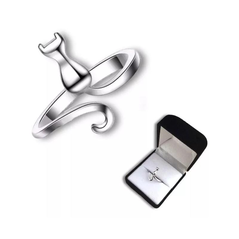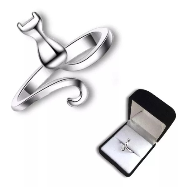 Dtup Anillo Kitten Elegante Plata Gato Regalo Minino Cat Kawaii