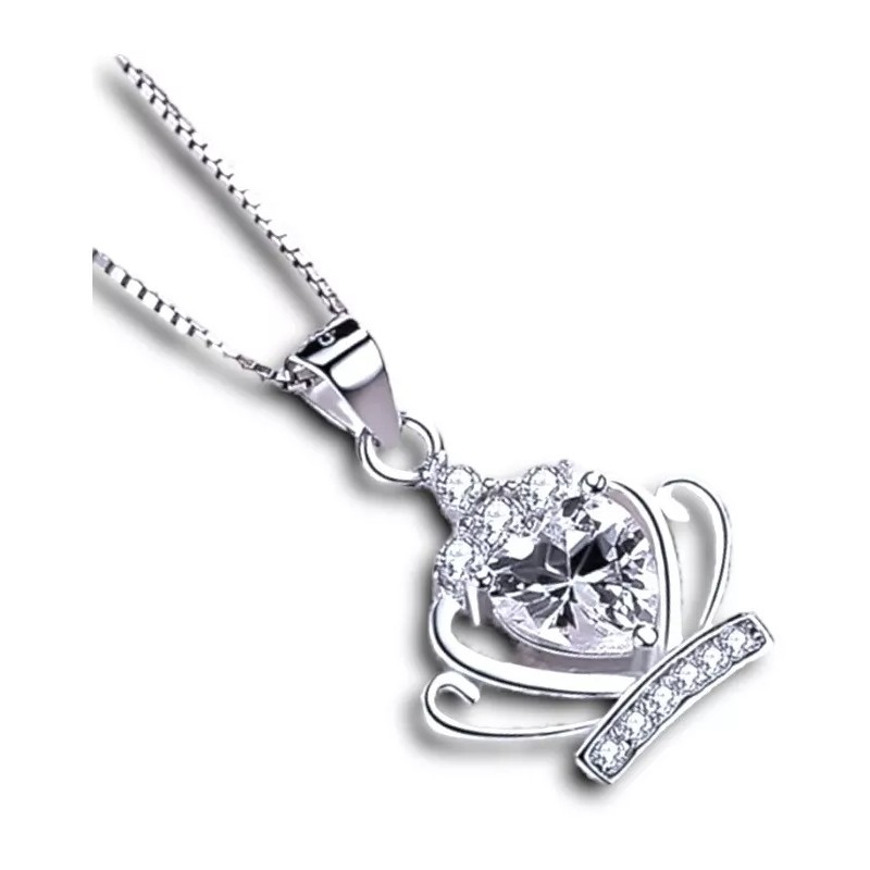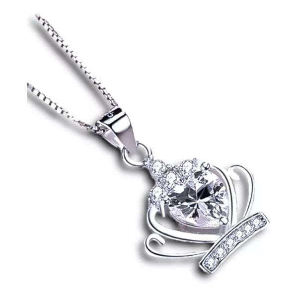 Elegante collar con dije diseño de corona de circonias brillantes.